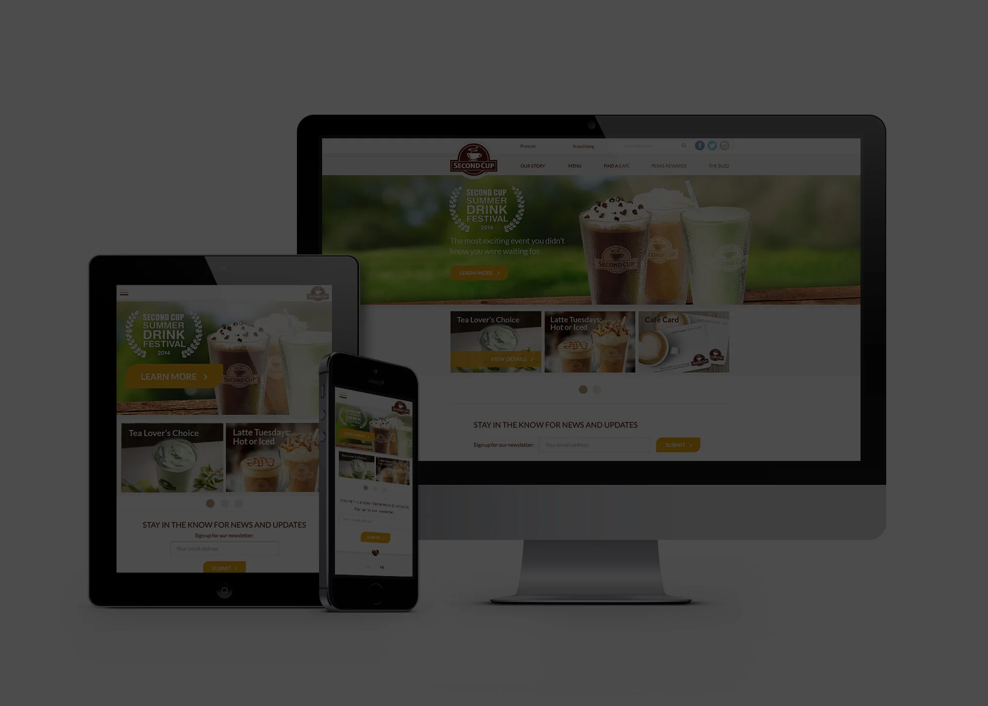 While at Olson (now ICF NEXT), I led the digital transformation for Second Cup, Canada’s second-largest specialty coffee retailer and franchise. The goal: revitalize their online presence with a bilingual, mobile-responsive platform that delivered a seamless and engaging user experience.